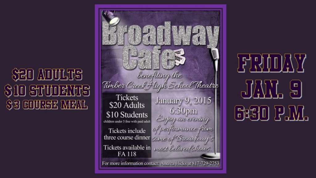 Join TCHS Theatre for Broadway Cafe at 6:30 p.m. tonight, Jan. 9.