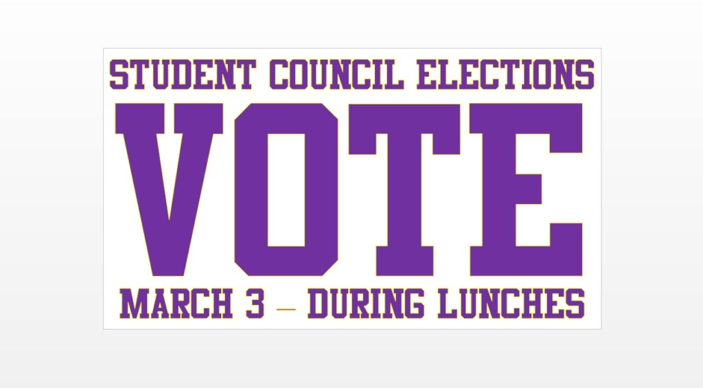 Student council elections will be held March 3 during lunch. Students will vote for class president, vice president and additional officers.