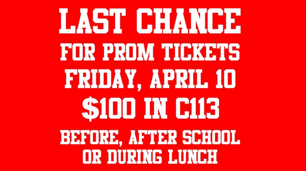 The Senior Class is offering one last chance for Prom tickets this Friday, April 10.