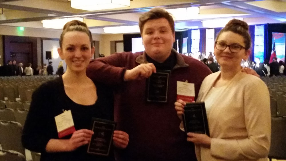 Zachery Greiner, Raven Santiago and Alyssa Wright competed together in the Social Media Campaign, advancing though area and earning second place at state, automatically qualifying them for the national competition.