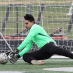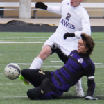 Mr. Day kisses a goat during the Feb. 13, 2015 pep rally. (Photo by The Creek Yearbook photographer Sabrina Trejo)
