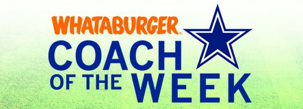 Each week in high school football season, the Dallas Cowboys and Whataburger nominate two local HS football coaches based on their recent match ups. Then students, parents, and fans can vote on which one of the coaches should be awarded the “Coach of the Week” prizes.