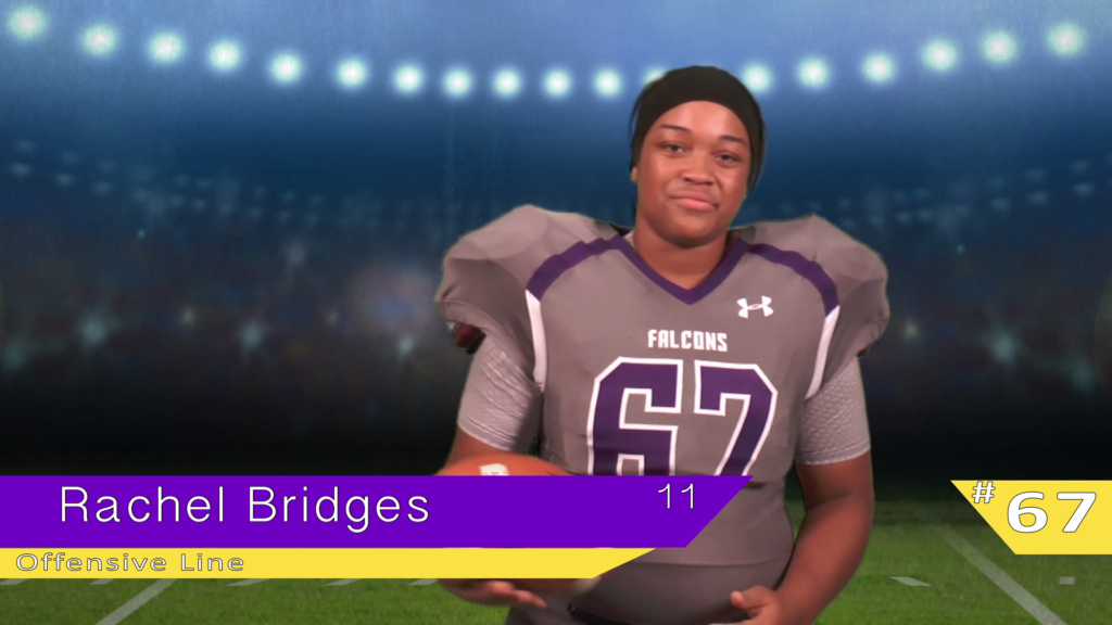 Rachel Bridges is the first woman to join the football team at Timber Creek. Bridges, a junior, plays on offensive line for the Falcons. She says that her whole family loves football and she grew up watching her cousins play for their high schools and her love for the sport grew.