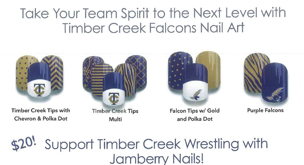 Participants can purchase custom designed nail wraps to support the wrestling team. Thirty-percent of the purchase price will go to the team as well as any purchase made through the website under the “Support Timber Creek Wrestling” party.