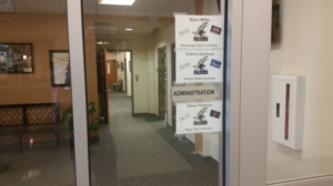 TCHS Seniors who’ve chosen and been accepted to the college they want to attend can join the “hall of fame” setup in the windows outside the main office.