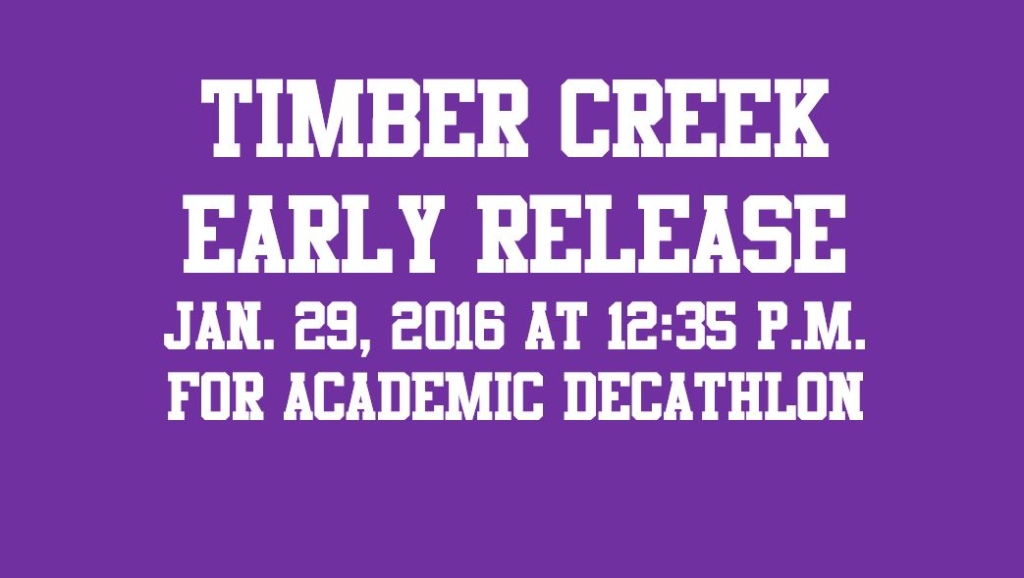 Timber Creek students will have early release on Friday, Jan. 29, 2016 at 12:35 p.m.