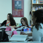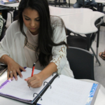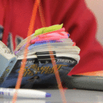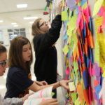 Students post annotations on A’s outside Reeves room (Photo by The Creek Yearbook Photographer Milly Orellana)