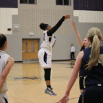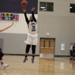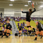 A Timber Creek Varsity Volleyball player leaps for the ball during the Sept. 1, 2015 home game against Weatherford. (Photo by Talon reporter Hannah Dykes.)