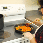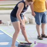 A Timber Creek art student paints a vinyl record to create a hand-made bowl.