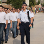 Homecoming court nominees and their parents walk onto the field during the Sept. 11, 2015 Homecoming Game. (Photo by The Creek Yearbook photographer Sabrina Trejo.)