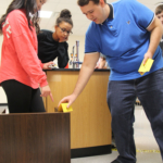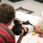 TCTV Photographer Jonah Martinez helps capture the forensic science scene on camera. (Photo by Yearbook photographer Katilyn Cass.)