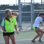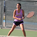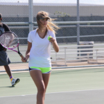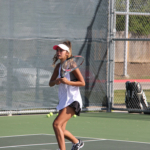 Tennis player Stephanie Wan practices on the Timber Creek court. (Photo by The Creek Yearbook photographer Tavin Stewart.)