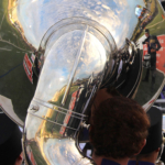 A view from behind a sousaphone player in shows a reflection of the Timber Creek High School Band. (Photo by The Creek Yearbook photographer J Haynes)