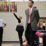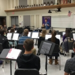 Photo of Timber Creek Band students learning “Soundpainting” with guest artist Leese Walker. (Photo courtesy of Blake Wilson.)