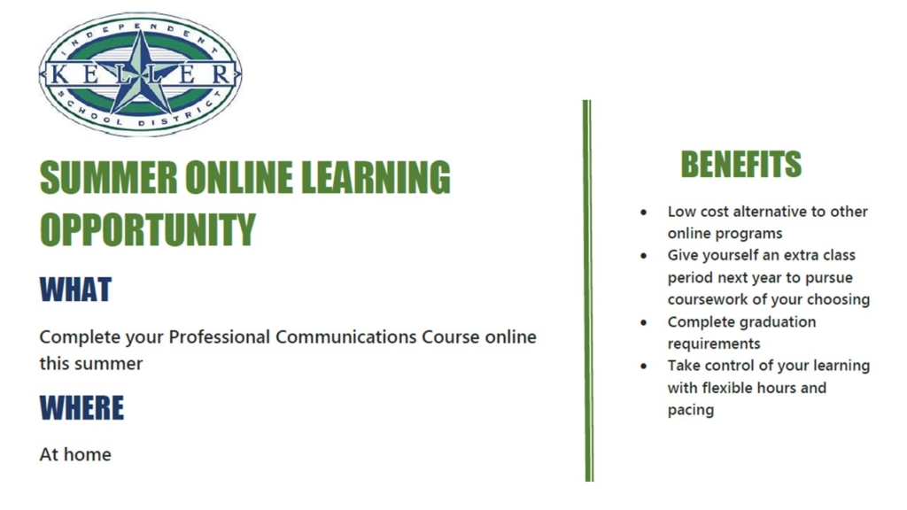Keller ISD is offering a unique way to get your Professional Communication credit this Summer.