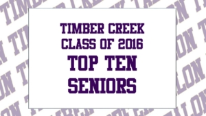 The Timber Creek newsletter is powered by contributions from our Timber Creek Student Media group (Talon, Yearbook, and TCTV). Find the latest news and information below and via our website, www.TimberCreekTalon.com Latest News Class of 2016 Top Ten Seniors Congratulations Read more