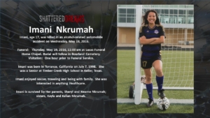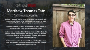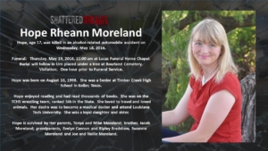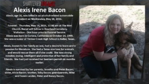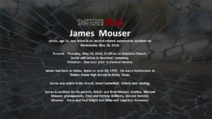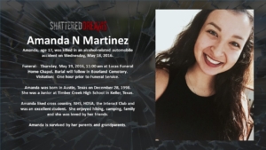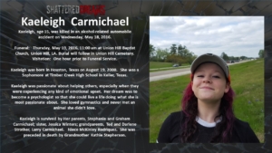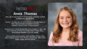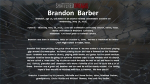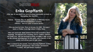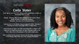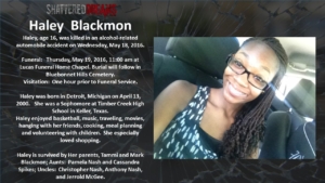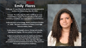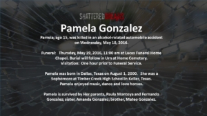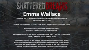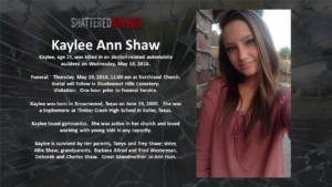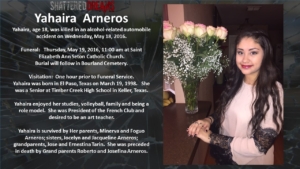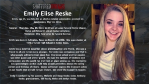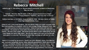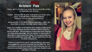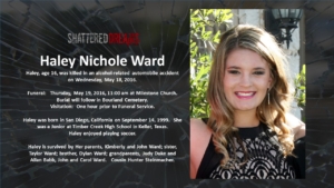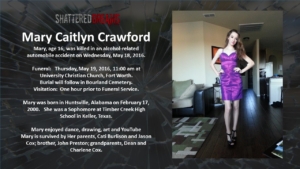 A simulated crash on May 18, 2016 involved 7 students from Keller ISD. Six of these were Timber Creek High School students, Hunter Powell, Josh Tallman, Zoe Ross, Sam Schlebach, Gracie Cooper, and Winston Castlemain. The seventh student, Zoe Ross’ sister, Delaney Ross, is a student a Trinity Springs Middle School.