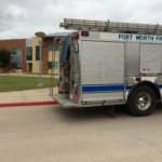 Fort Worth Fire Department parked outside Timber Creek High School on April 18, 2016. (Photo by Emily Gogle)