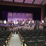 Photo of Timber Creek Band students learning “Soundpainting” with guest artist Leese Walker. (Photo courtesy of Blake Wilson.)