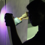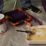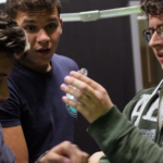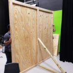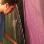There were problems along the way as Escutia and Cooper fixed the lights for the set. There was a broken lens in one of the lights, but Cooper and Escutia made do. Gray and Rendina worked on the back drop for TCTV. They used brushes dipped in gold paint, and flicked the spots onto the wood that was already painted purple.
