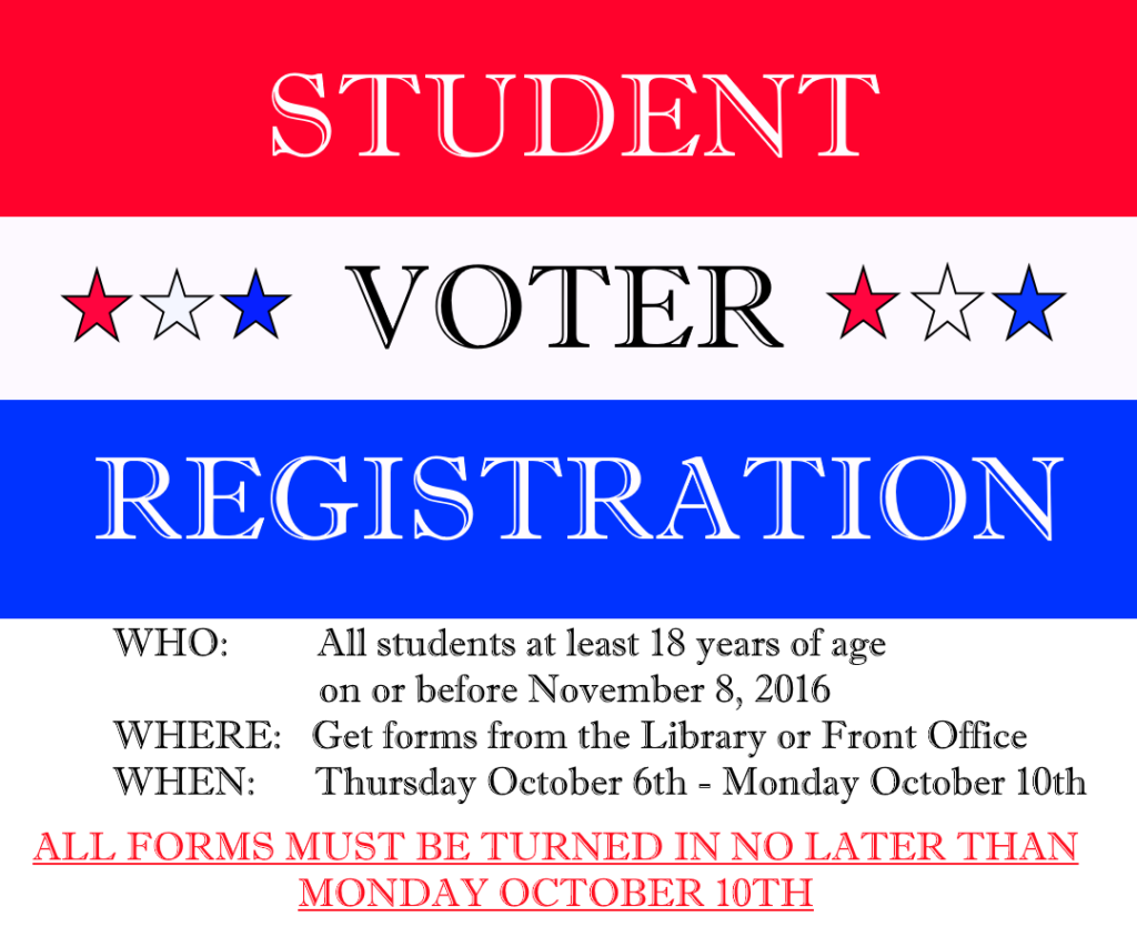 Timber Creek High School is encouraging all students who will be 18 years of age on or before Nov. 8, 2016 to register to vote in the 2016 presidential election.
