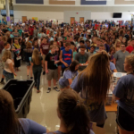 Members of the TSMS, TCHS, and TVMS bands meet before the Sunshine Spaces reveal. (Photo from The Creek Yearbook.)