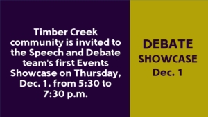 The Timber Creek Speech and Debate team have been highly successful at their competitions for the 2016-17 school year. However, beyond results, not much of their skill is displayed to the public. For the first time in the team’s history, that is about to change.
