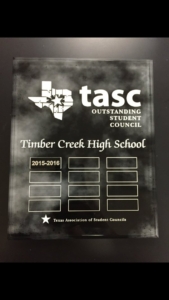 Timber Creek’s Student Council has been awarded with an outstanding pride and patriotism and community service by the Texas Association of Student Councils.