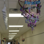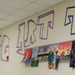 TCHS Art teacher Jennifer Thompson had students tape perspective drawings on the walls of the art hallway for Big Art Day 2016. (Photo by Carson Watzke.)