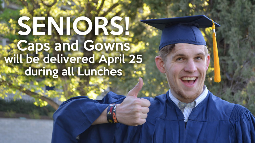 All Caps and Gowns will be ready for pick up on Tuesday, April 25th during all lunches.