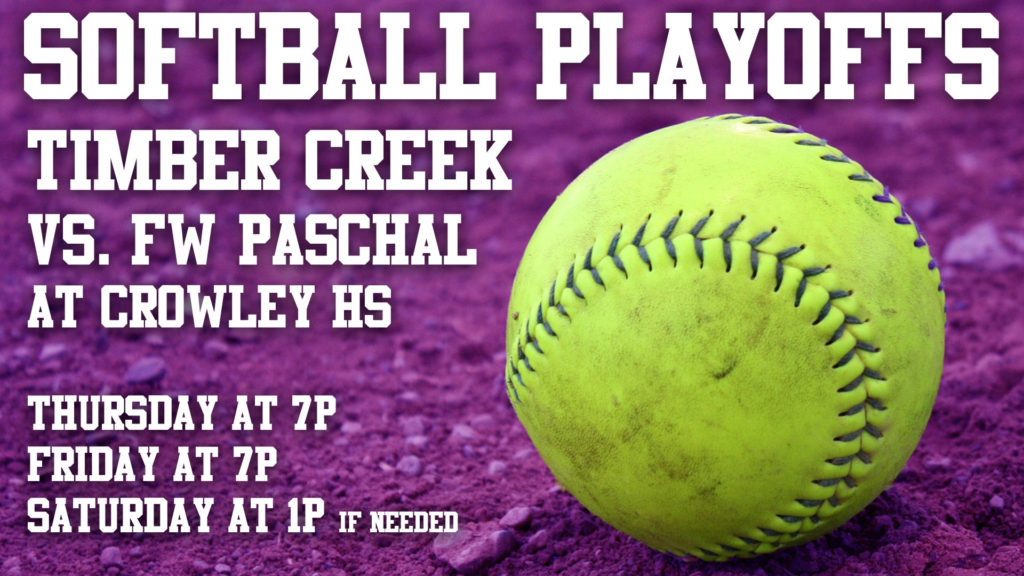 The first round of playoffs is set to begin against Paschal High School at Crowley High School. The games are set to be held on Thursday, April 27 and Friday, April 28 at 7:00 p.m. if necessary the third game is to be held on Saturday, April 29 at 1:00 p.m.