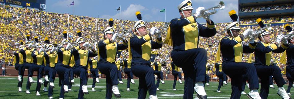 For more than 100 years, the Michigan Marching Band has thrilled thousands of fans with exciting performances. That tradition of excellence thrives today as they continue the pursuit of high levels of visual and musical performance when they perform at the Big House in Ann Arbor.