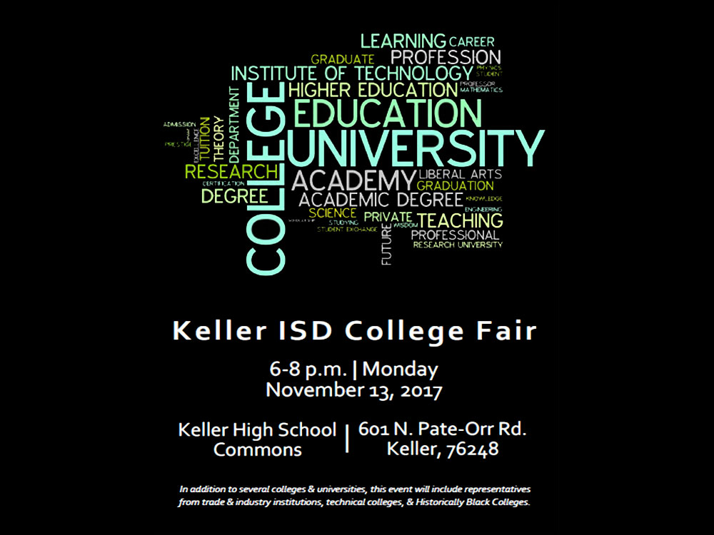 Keller ISD is hosting a College Fair from 6 to 8 p.m. on Monday, Nov. 13, 2017.