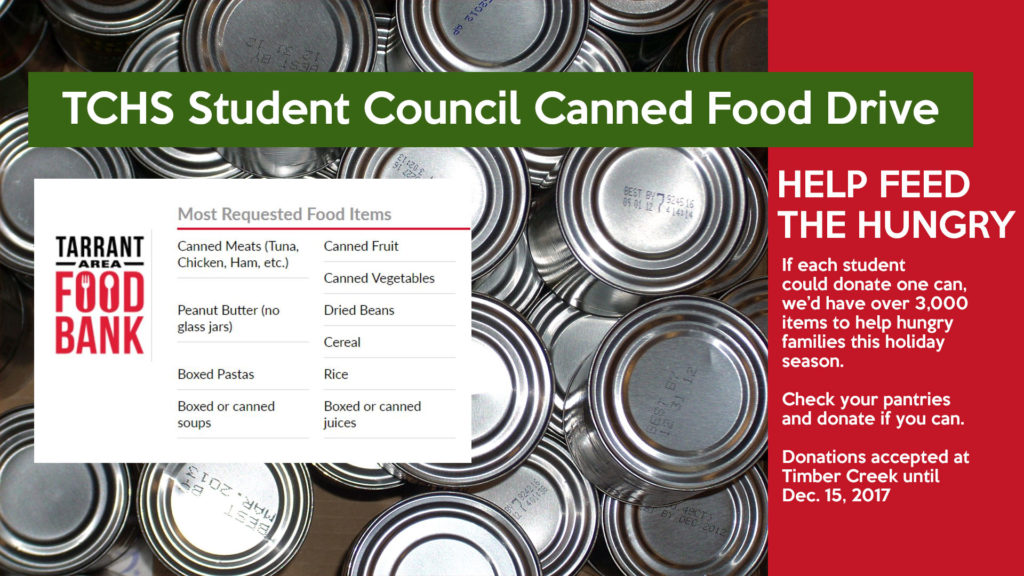 Student Council will be hosting a food drive through Dec. 15.