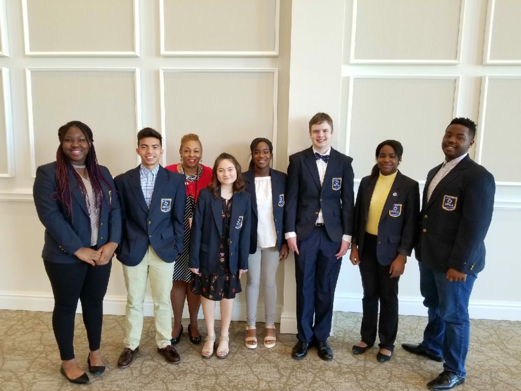 The program not only helps the student’s careers, it also trains them to think quickly, and applies the information they learn in school to real life situations. The members pictured from left to right are Grace Adu, Sebastian Ochoa, Peggy Strong-Jonson Advisor, Chekinah Atkinson, Clementine Bela, Wyatt Whitmill, Cecilia Beia, Shelly Lambe.
