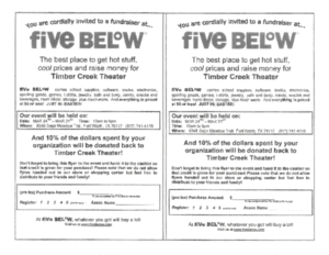 The Theater Boosters are hosting a fundraiser at Five Below on 9348 Sage Meadow Trail, from March 24 to March 31.