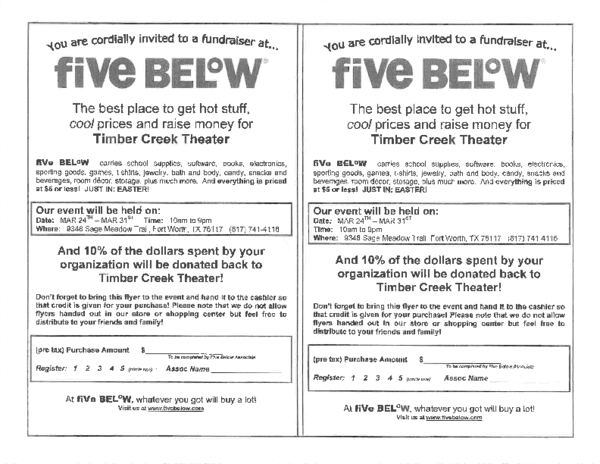 It is important that one doesn’t distribute the flyers in store, Five Below will not accept those, but feel free to hand out the flyers to friends and family.