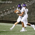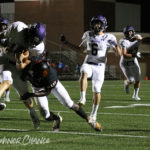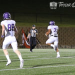 After the half, West Mesquite opened with a touchdown to extend to 35 points — but Timber had two tricks, as Nate Monticure made the TD and Max Arnold caught a two point conversion to tie the game up again, finishing the third quarter 35-35.
