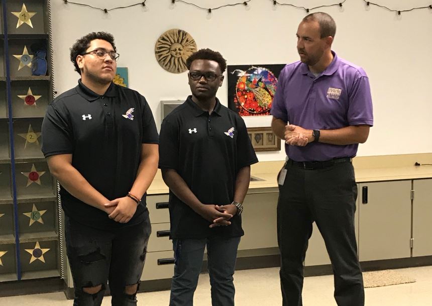 When seniors Jamal Stacey and Gelvinn Pluas helped a fellow Falcon, the young men never expected the events that followed. Like all kind acts, this small gesture went a long way: it traveled from Timber Creek’s cafeteria to Independence Elementary School.