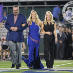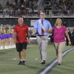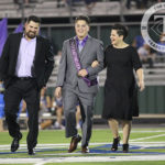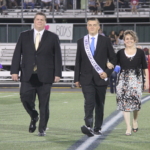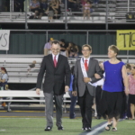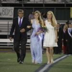 Homecoming court nominees and their parents walk onto the field during the Sept. 11, 2015 Homecoming Game. (Photo by The Creek Yearbook photographer Sabrina Trejo.)