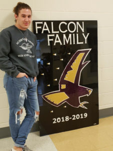 Senior, Hadyn Medina, created a one of a kind board to be displayed on the giant rock by the North East entrance of the school.