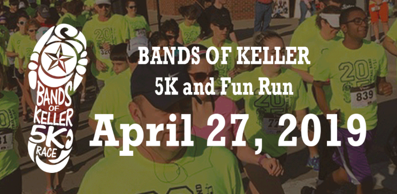 The sixth annual Bands of Keller 5K will be held on Saturday, April 27 at the Keller Town Hall. This year, the event will consist of a Fun Run, commencing at 8 a.m., and a 5K that will start at 8:30 a.m. As participants run, the four Keller ISD high school bands will play music along the course.