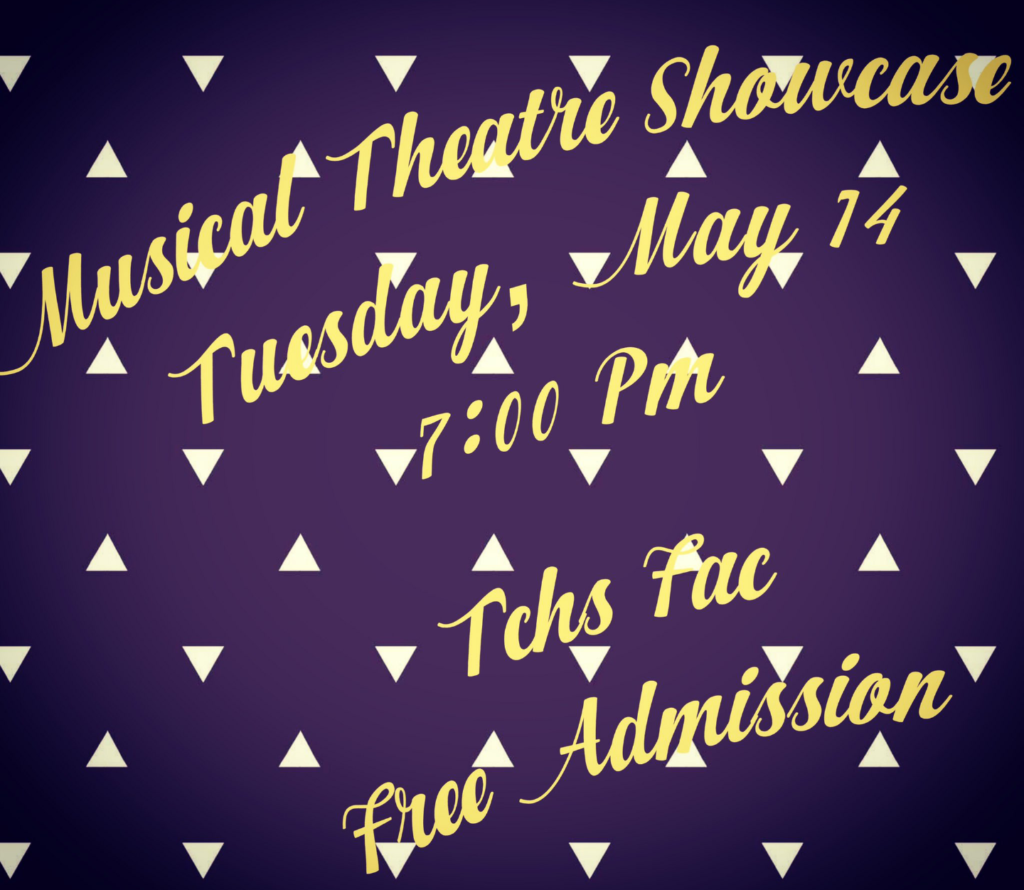 Musical theatre classes will showcase their classwork on Tuesday, May 14 at 7 p.m. in the Fine Arts Center. Admission is free.