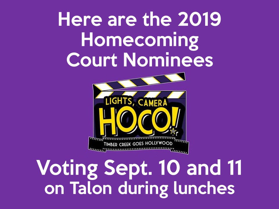 Voting will be conducted during lunches Sept. 10 and 11 during lunches, using a link provided on the Timber Creek Talon App, our Twitter feed, and on Talon itself.