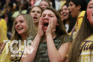 PHOTOS: Cheer, Students, Sky Dancers “Gold Out” for Pep Rally