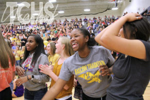 PHOTOS: Cheer, Students, Sky Dancers “Gold Out” for Pep Rally