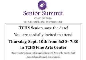 Timber Creek Seniors are encouraged to attend the Senior Summit on Sept. 10 from 6:30 to 7:30 p.m. in the TCHS Fine Arts Center.