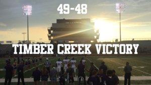 This past Friday, Aug. 26, your Timber Creek Falcons won the first game of the season against Irving Nimitz, 49 to 48.