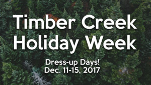 Timber Creek Student Council is putting together a festive way to show your holiday spirit with dress-up days from Dec. 11-15, 2017, the last week of the first semester.