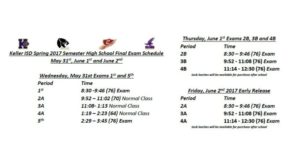 The Keller ISD board voted on Tuesday, May 16 to adjust the end of the 2017-18 school year and make both June 1 and 2 into early release days for high schools.